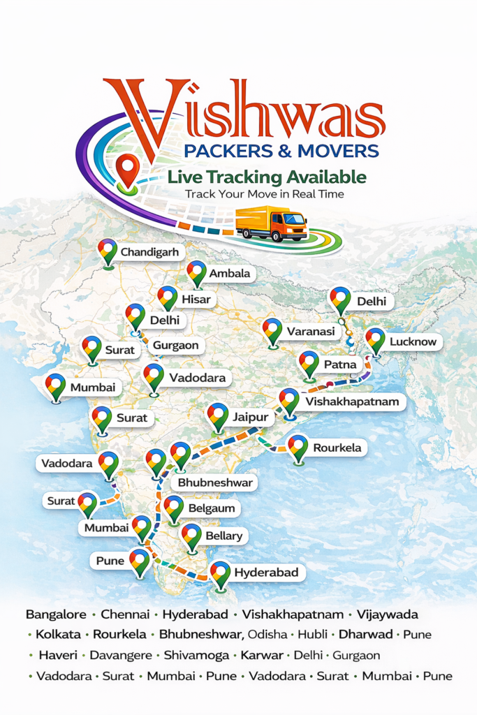 Open the Vishwas https://share.google/6Rd5jtMSk5WnKqBDa choose Packers and Movers Choose whether you want to shift within the city or between cities Enter your pickup and drop address Select the items you want to move Add additional details such as single-layer packing/furniture dismantling and assembling Select the shifting date and pick-up slot Choose your payment method – cash, credit, or PayTM Apply any coupons for special discounts!